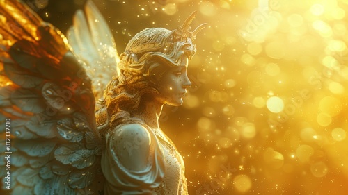 golden light, digital artwork, peaceful, heavenly, fantasy art, mystical, serene, spiritual, angel wings, magic, shimmering, illuminated, grace, supernatural, elegance, sacred, enchanting
