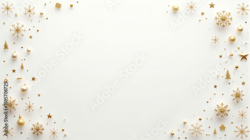 Golden Winter Snowflake and Ornament Border on White Background