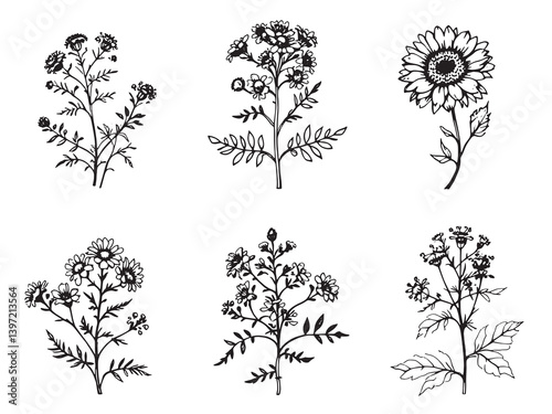 goldenrod, flower, black, line, art, white, background, plant, nature, floral, vector, drawing, modern, graphic, style, minimal, elegant, vignetting, outline, simple, theme, icon, classic, botany, green, illustration, natural, decor, trendy, object, form, leaf, image, ink