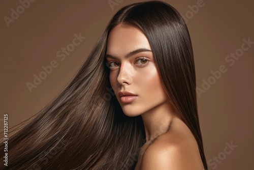 Gorgeous woman with sleek salon treated hair Keratin straightening spa services and hair care for a stunning hairstyle