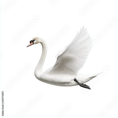 Graceful Swan Serenity on White Background - Photorealistic Image of Elegance and Tranquility