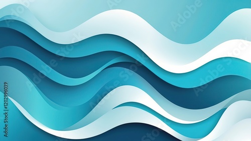 Gradient background with dynamic waves in blue, aqua, and white, vector abstract art.