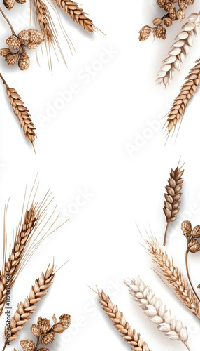 rice, millet, sorghum, wheat, edge, border, grain, cereal, natural, organic, agricultural, harvest, food, dry, decoration, texture, design, white, background, rustic, nature, crop, plant, growth, farming, wellness, nourishment, sustainable, field, fresh, healthy, simple, brown, beige, arrangement