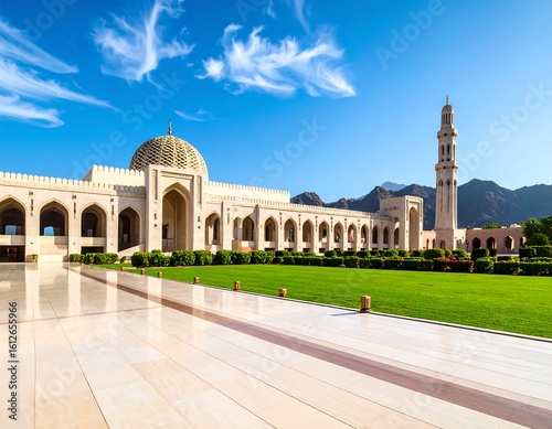 mosque, grand, morning, light, serene, beautiful, architecture, building, islam, dome, minaret, exterior, garden, grass, patio, facades, perspective, sky, cloud, mountain, sun, peace, prayer, faith, travel, vacation, tour tourism, middle, east, arabia