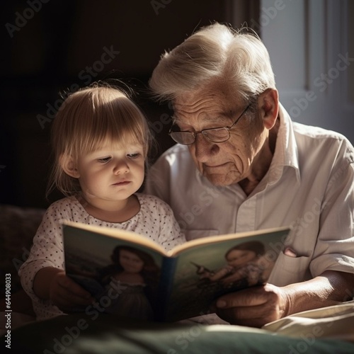 grandmother and granddaughter reading a book