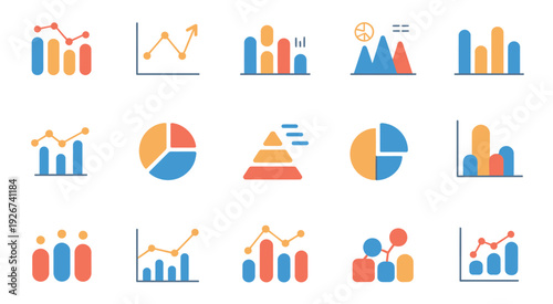 Graphs and Data Visualization Vector Icons, Including Charts, Diagrams, and Business Statistics Symbols for Infographics, Reports, Presentations, and Creative Design Applications.
