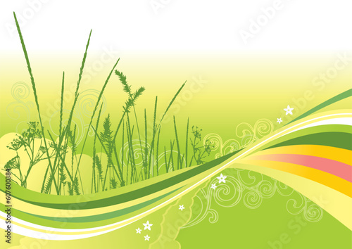 grass, flowers and abstract lines background / vector illustration Layers are separated! A4/ vector cmyk