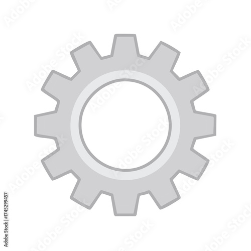 Gray Gear Mechanical Component With Inner Circle Isolated On White Background