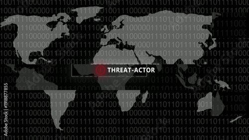 Gray map overlay on digital binary code Generate title without using the word "Title:" before it. background highlighting threat actor cybersecurity risk comp