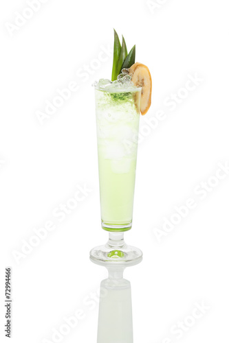 alcohol, banana, bar, clipping path, cocktail, cold, cool, cooling, cube, fresh, fruit, green, ice, isolated, leaf, liquid, melon, refreshing, sweet, beverage