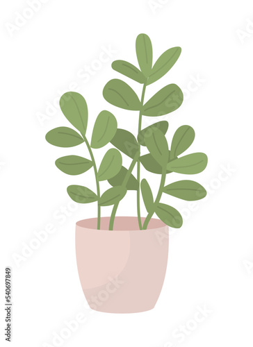 Green branches in flowerpot semi flat color vector object. Houseplant cultivation. Editable element. Full sized item on white. Simple cartoon style illustration for web graphic design and animation