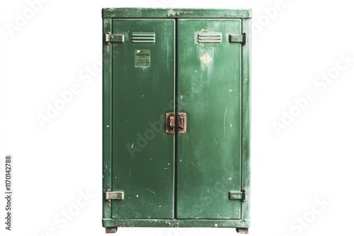 green, cabinet, rust-eaten, lock, old, worn, appearance, door, metal, open, storage, vintage, retro, box, safe, object, secure, safety, business, war, military, light, army, design, wall, equipment, antique, store, yellow
