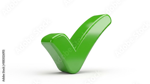 Green checkmark icon in glossy finish on white background with soft lighting for approval symbol