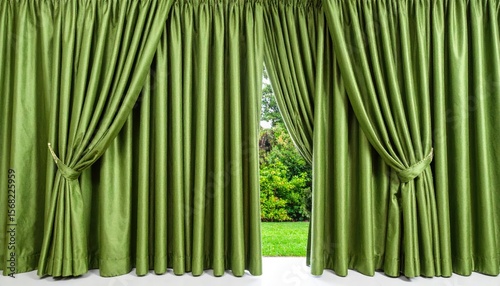 curtain, green, garden, window, view, open, sunlight, nature, home, decor, drape, fabric, room, light, patio, outside, fresh, bliss, relaxing, privacy, beautiful, peaceful, luxury, interior, design
