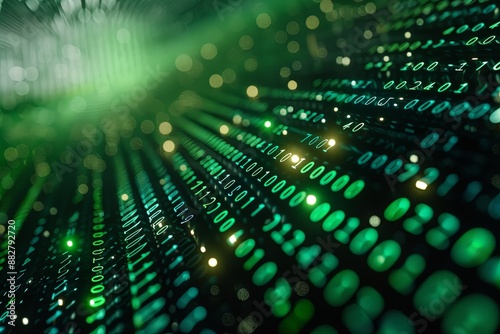 Green dark binary code data streaming background created with Generative AI