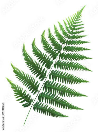 Green fern leaf showcasing its intricate leaf structure and vibrant color, cut out - stock png.