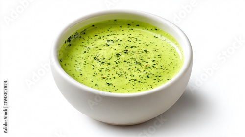 Green goddess dressing isolated with crisp shadow, white background, high commercial usability