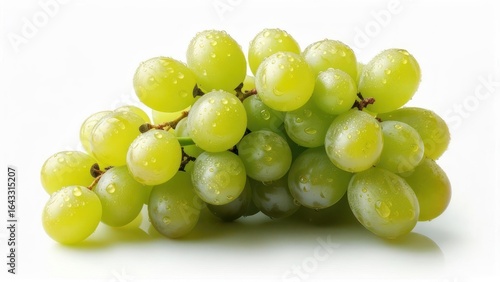 grape, green, fresh, bunch, fruit, water, droplet, closeup, healthy, food, vitamin, nourishment, produce, organic, natural, ripe, delicious, juicy, sweet, taste, cluster, food photography, image, isolated, white, background, half face, bright, light, close, macro, freshness, texture, round, honed, health food, goodness, nature, fruit, natural light, flocked