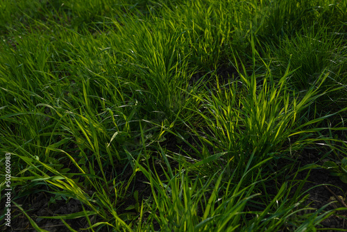 Green grass in the lawn in summer, closeup