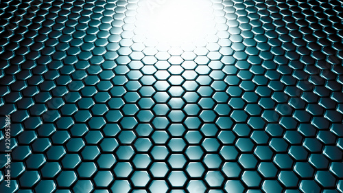 three-dimensional, illustration, rendering, background, abstraction, texture, hexagon, geometry, futurism, futuristic, honeycomb, design, green, turquoise, grey