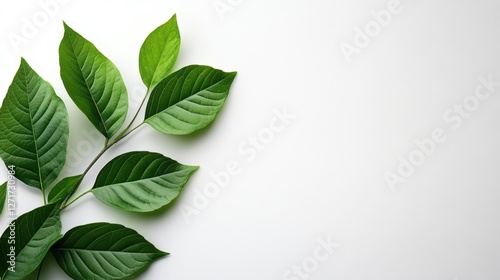 Green leaf resting on a clean white background showcasing natural beauty and simplicity