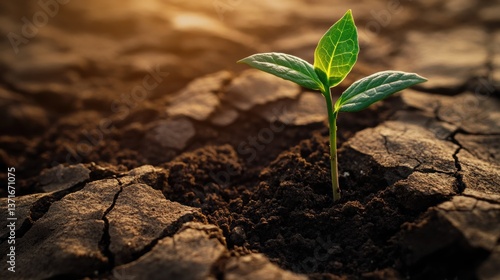 green plant sprouting from rich soil held by a cracked earth surface, symbolizing hope and renewal on Earth Day