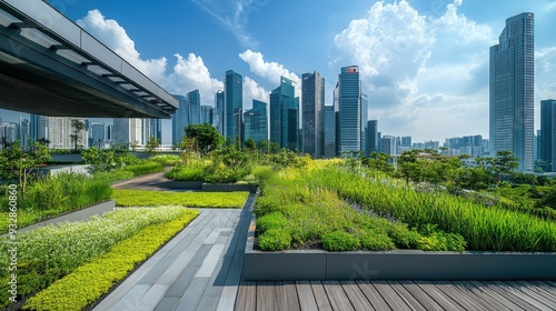 Green rooftop garden in an urban setting, sustainable city living and eco-friendly design -