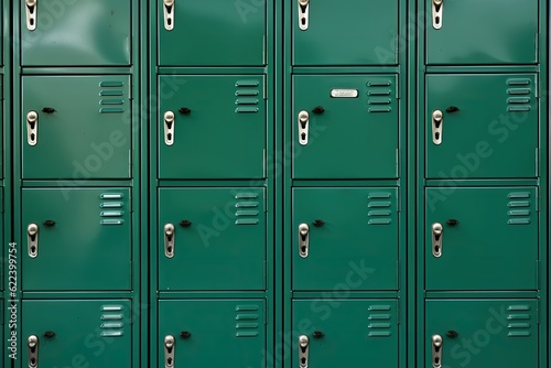 Green school lockers. Student lockers in the style of American schools, Generative AI