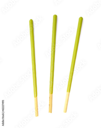 green tea or macha salt cracker stick on white background