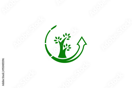 Green tree and arrow logo design. Represents growth, sustainability, and eco-friendly concepts. Perfect for environmental, organic, and health-related businesses.