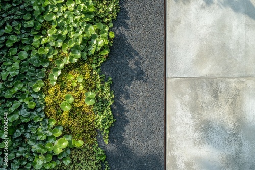 green, wall, terrazzo, concrete, plant, foliage, texture, contrast, nature, design, garden, landscaping, architecture, background, modern, minimalist, serenity, calm, peaceful, building, surface, stone, grey, grey, paving, tile, greenery, leaf, vibrant, fresh, organic, growth, sustainable, environmentally friendly, environment, natural, aesthetic, beauty, visual, image, photo, element, style, contemporary