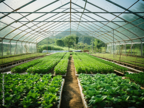 greenhouse, plant, vegetable, growing, agriculture, hydroponics, green, light, structure, interior, modern, row, container, fresh, young, natural, indoor, sustainable, environment, gardening, healthy, food, crop, farming, produce, organic, technology, nature, garden, plant, copy, space, environmentally, transparent, panel, organised, leafy