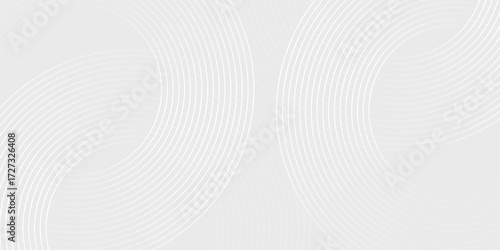 Grey abstract background with white circle lines. Geometric stripe line art design. Minimal lines pattern. Modern futuristic concept.