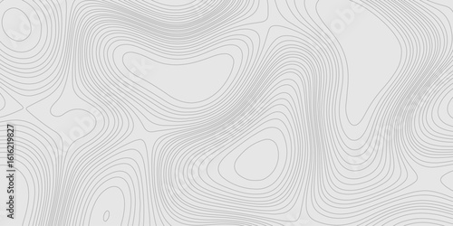 Grey topography map for geographic mountain landscape terrain grid with contour lines for modern seamless ornament design, geographic relief map grey abstract wave shapes curvy line trendy design.