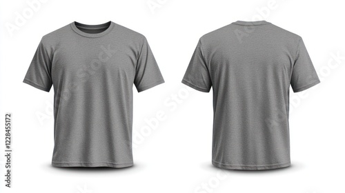 Grey T-shirt mockup, front and back view, isolated, white background, apparel design