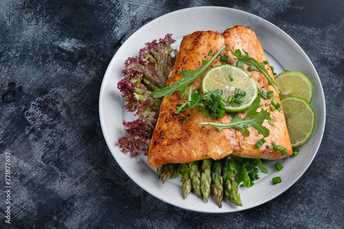 fish, salmon, fillet, grilled, healthy, food, dinner, meal, lunch, lemon, cooked, plate, green, vegetable, cookery, grill, prepared, diet, epicure, omega, roasted, salad, nourishment, herb, fried, eating, eatery, three, lime, asparagus