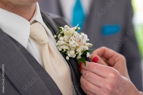groom with wedding boutonnière
