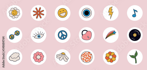 groovy, funky, peace, hallucinogen, power, flower child, fun, set, badge, happy, love, illustration, art, 70s, nubes, vector, design, retro, flower, sticker, vintage, 1960s, good, 1970s, symbol, daisy, 60s, element, pop, style, cartoon, icon, eye, graphic, rainbow, fashion, butterfly, summer, clip art, background, round, highlight, print, poster, abstract, vibe, face