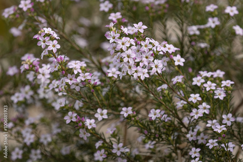 Gros plan de Coleonema pulchrum en fleurs