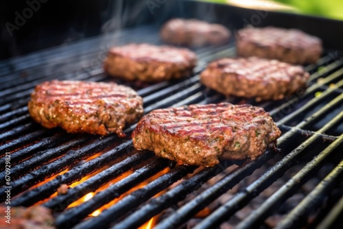 ground beef patties grilling on an automatic grill