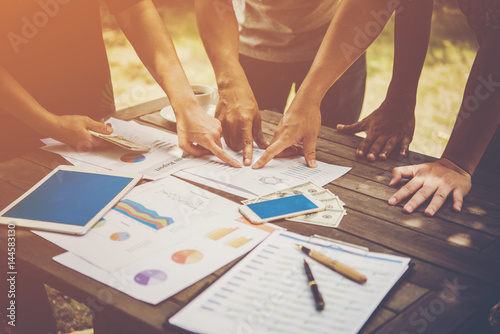 Group of business people analysis with marketing report graph, Young specialists are discussing business ideas for new digital start up project.