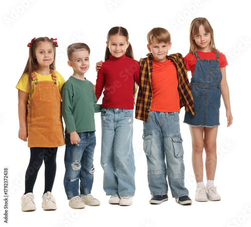 adorable, background, boy, casual attire, caucasian, children, childhood, children, clothes, colours, cool, cute, development, enjoy, friends, friendship, full-length, fun, funny, girl, group, happy, isolated, joy, children, children, leisure, lifestyle, little, many, people, playful, portrait, kindergartner, primary, pupil, school, schoolboy, schoolchild, schoolgirl, smart, smiling, style, stylish, together, trend, white
