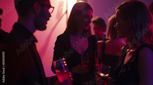 Group of friends having a discussion over a few drinks High society people talking and having a good time together at a party : Generative AI