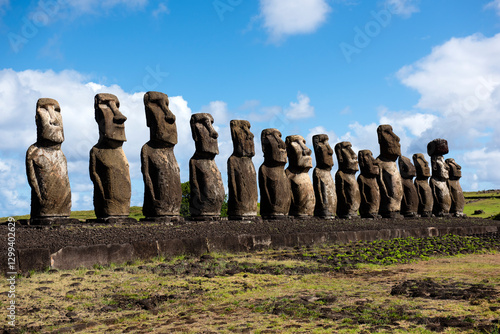 Group of Moai statue of Ahu Tongariki, Easter Island, Valparaíso Region, Chile