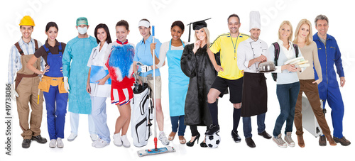 group, people, isolated, diverse, professional, business, different, profession, crowd, cheerleader, doctor, maid, accountant, cleaner, chef, nurse, student, large, construction, community, line, men at work, nursing, staff, man, woman, diversity, social, happy, association, homemaker, background, white, standing, row, uniform, cook, casual attire, human, many, businesswoman, friendly, smiling, medicine, population, positive, society, confident