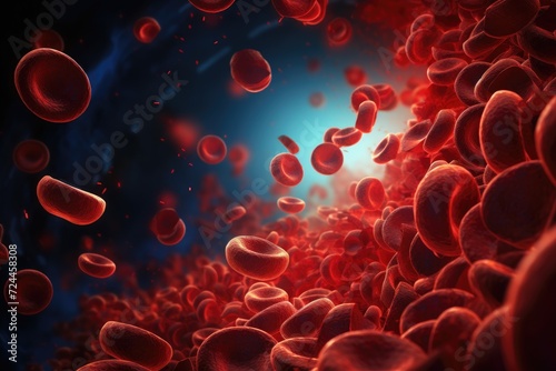 Group of Red Blood Cells Inside Vein, Oxygen Transport in the Human Body, Red blood cells arterial blood stream health biology, AI Generated