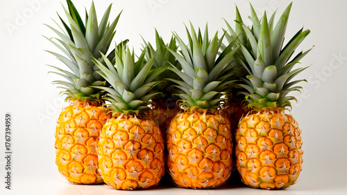 Group of Ripe Pineapples. Tropical Agriculture, Exotic Harvest, Sweet Produce.