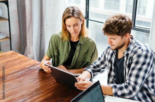 conversation, colleague, architect, studying, student, lifestyle, freelance, loft, freelancer, cyberspace, working, accounting, management, interaction, account, company, hipster, connection, canvasses, marketing, together, casual attire, workplace, discussion, businesswoman, co-worker, creative, woman, man, group, team, people, modern, digital, cooperation, corporate, co-worker, professional, startup, meeting, project, brainstorming, communication, technology, businessman, teamwork, laptop, office