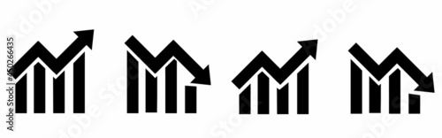 Growing bar graph icon set. Simple chart increase. Progress bar symbol. Green and red arrow