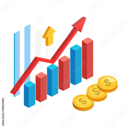 investment, graph, chart, growth, business, finance, money, dollar, coin, isometric, datum, analysis, increase, profit, success, vector, illustration, design, economy